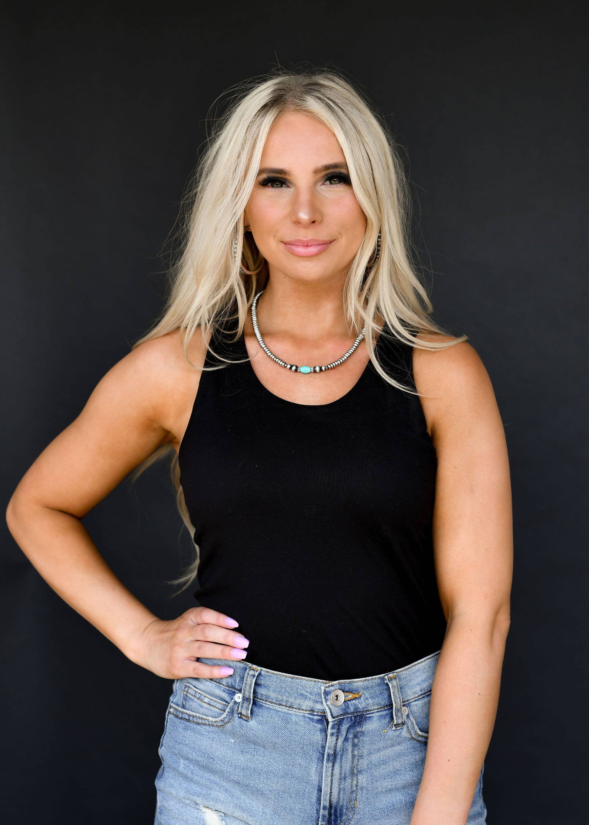 16" Silver Disc Beaded Necklace with Green Turquoise