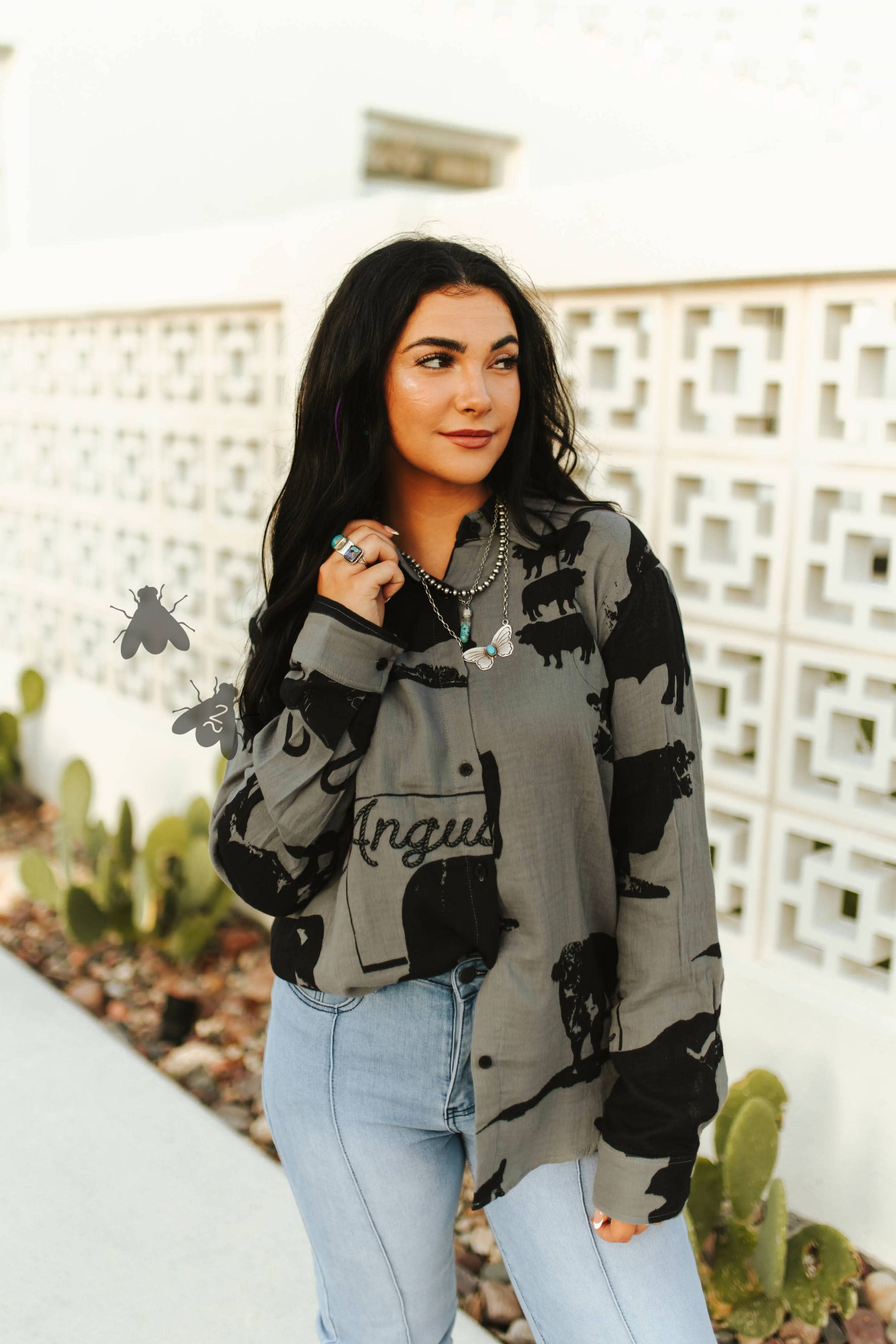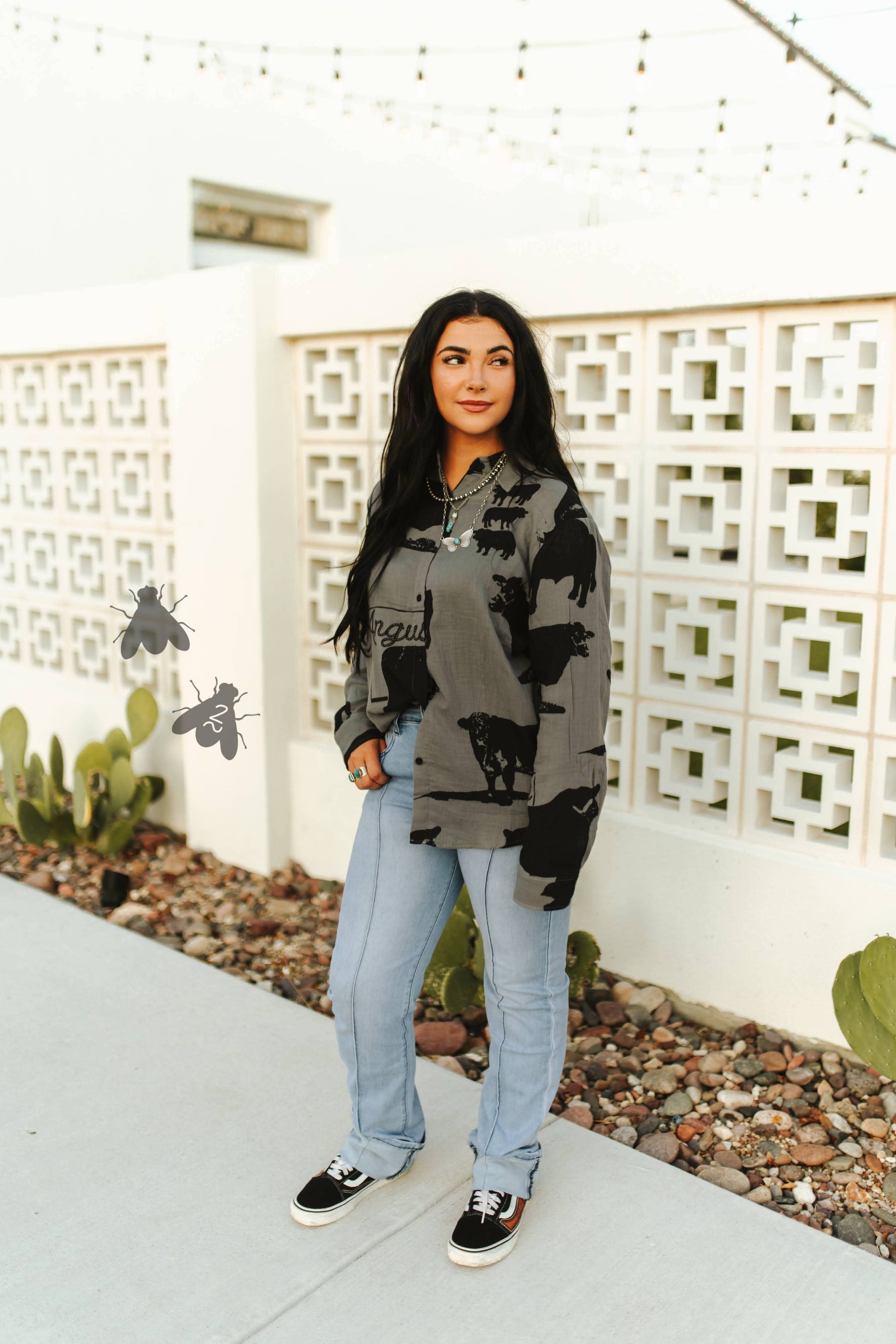 Showcase your unique style with our Angus Alley button down shirt, designed for women by 2 Fly Co. This top pairs perfectly with our Whistle Britches in light for a complete look. Our brand's original, hand-drawn designs are crafted to outlast fleeting trends, offering a timeless appeal. Whether you're embracing the weird or appreciating the diverse, this shirt allows you to express your individuality while staying fly. Join our inclusive family, ranging from XS to 3X, and make a lasting impression.