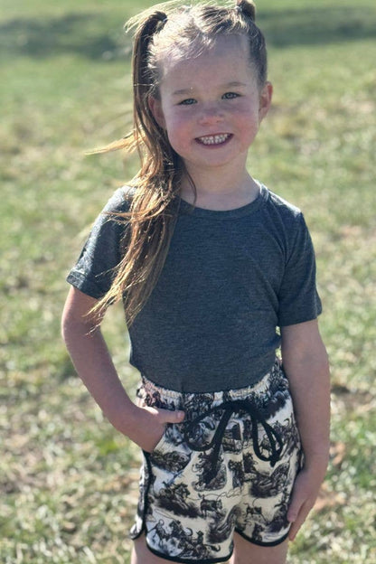 Ride the cuteness of these adorable Rodeo Road Shorts KIDS, perfect for little cowboys and cowgirls! Made from soft and comfy material, these shorts are not only fun to wear but also match perfectly with mom's Rodeo Road Shorts. Giddy up!